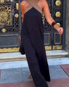 De gekruiste halslijn verbetert het silhouet, terwijl de open rug een sensuele, verfijnde touch toevoegt.
